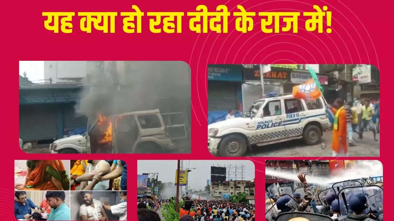 पश्चिम बंगाल,में बीजेपी का प्रदर्शन हुआ हिंसक, पुलिस पर हमला, पुलिस गाड़ी की तोड़फोड़ और आगजनी